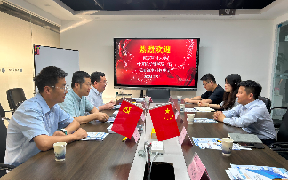 为贯彻落实党中央、国务院关于高校毕业生就业工作的决策部署,全力促进毕业生高质量就业和产教融合开展,2024年5月15日下午,南京审计大学计算机学院副院长郭红建带领计算机系主任崔应留、信管系主任姚兴山以及吕从东老师来到江苏豪门国际科技集团召开“访企拓岗产教融合”专项行动。